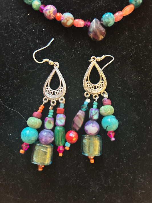 (3) Ethnic & Earthy Vibe ChandelEarrings with Paper Beads and Rainbow Imperial Jasper Earrings