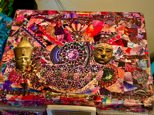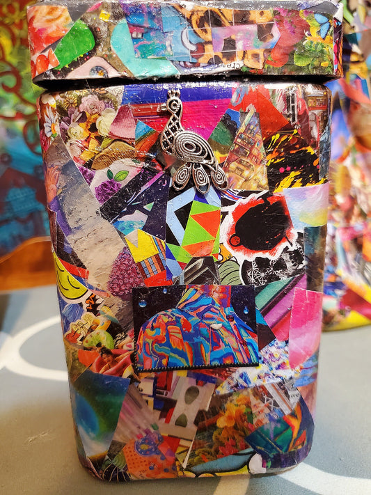 40oz Recycled Canister "Total 9 Diamond Eye Kaleidescope Yoruba Tribe" Prismatic Dynamic Retro-tech Abstract Tactile Decoupage Collage