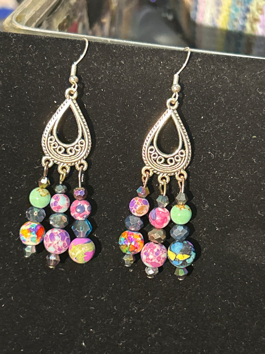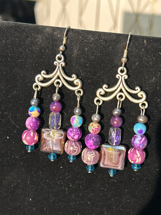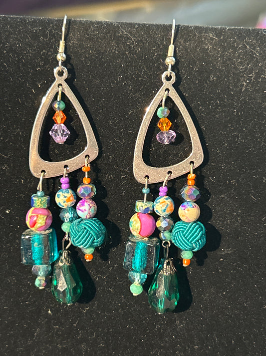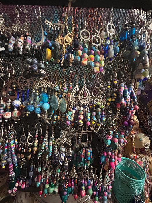 Handmade ChandelEarrings w. Glass & Gemstone beads ~ original designs funky unique pretty hypoallergenic findings