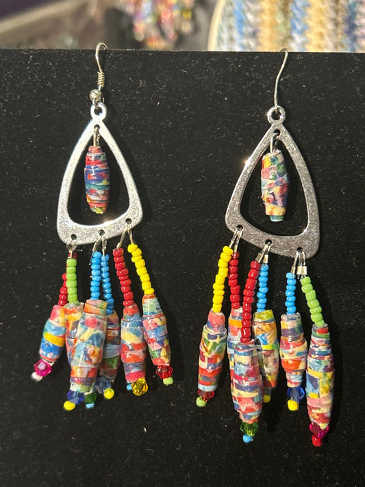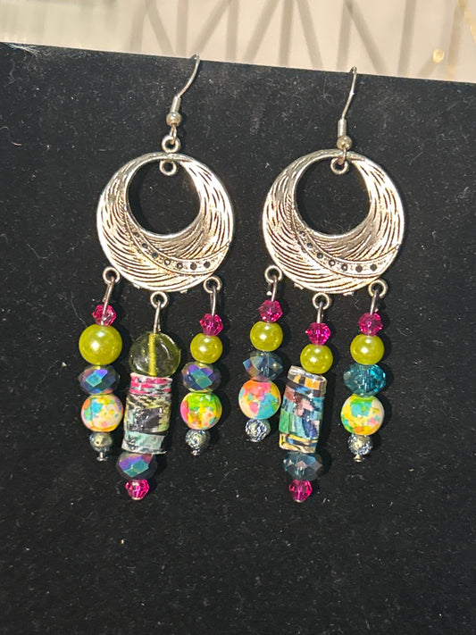 Handmade ChandelEarrings w. Paper l, Glass & Gemstone beads ~ original designs funky unique pretty hypoallergenic findings