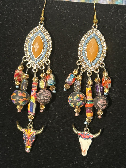 Far-Out West Handmade ChandelEarrings w. Paper, clay, & Gemstone Beads~ original designs, funky unique pretty hypoallergenic