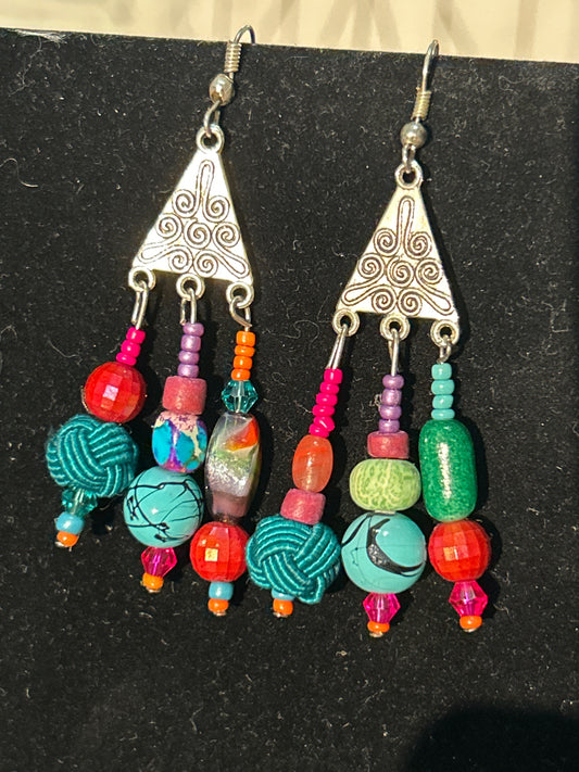 Temu WHAT ! Handmade ChandelEarrings w. Glass, GemStone, & Fabric beads ~ original designs funky unique pretty hypoallergenic findings