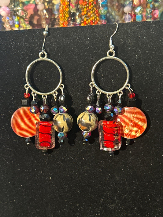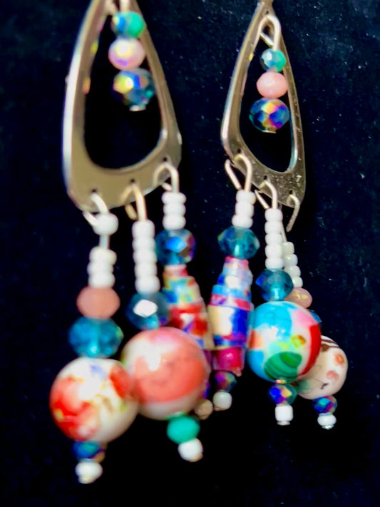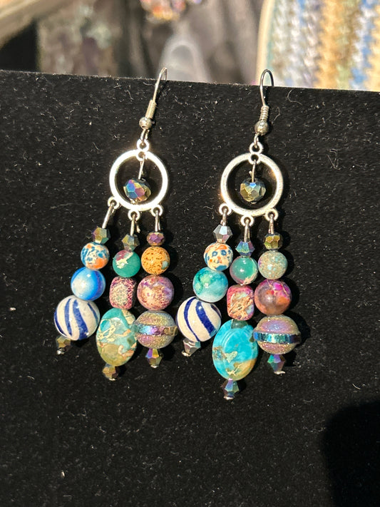 Spaced Out Handmade ChandelEarrings w. glass & stone Beads~ original designs, funky unique pretty hypoallergenic