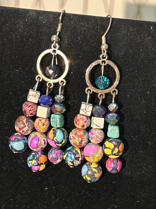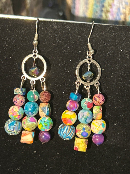 Splatter Stones Handmade Chandelearrings w. Gemstone & Clay Besds ~ original designs funk and flair unique fun original hypoallergenic