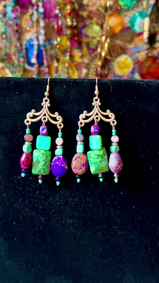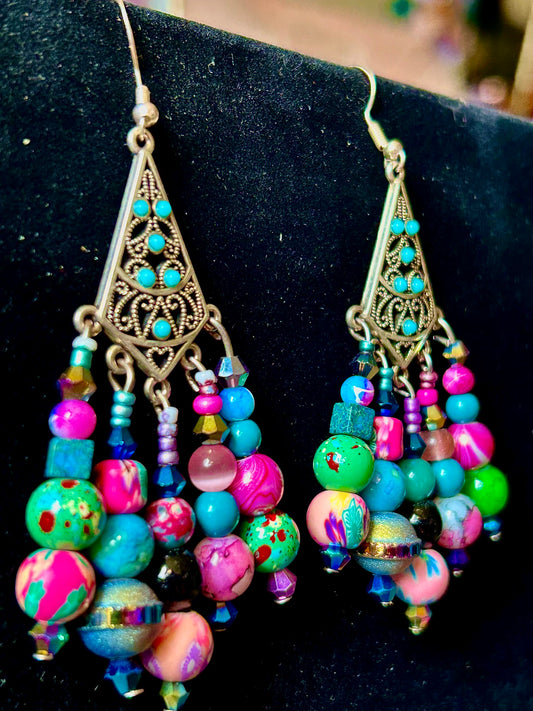 THE Wackest Pallette Handmade ChandelEarrings w. Glass & Gemstone beads ~ original designs funky unique pretty hypoallergenic findings