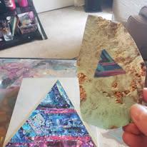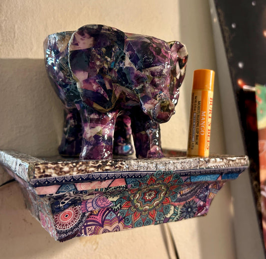 Free Hanging Shelf Decoupage Abstract Collage Wrapped in "Pink and Blue" ~ Resin Coat ~ Chaotic, Analog, Unique, Trippy, Handmade, RetroTech