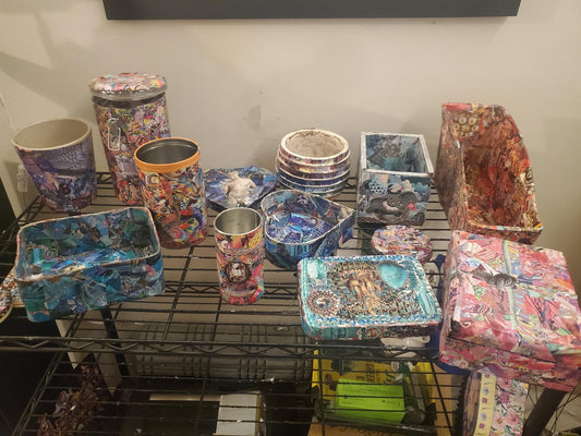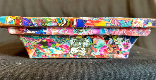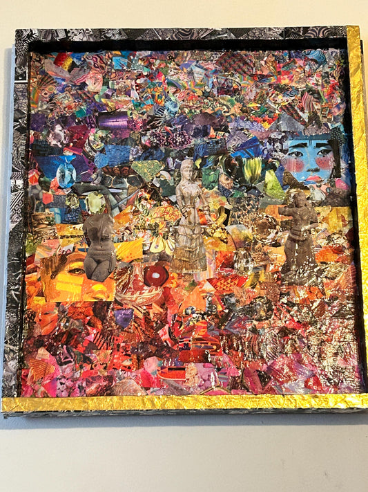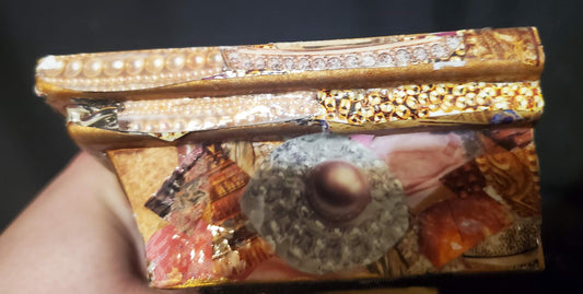 Hanging Shelf Decoupage Abstract Collage Wrapped in "Everycolor" Rose Gold lined ~ Resin Coat ~ Chaotic, Analog, Unique, Trippy, Handmade, RetroTech
