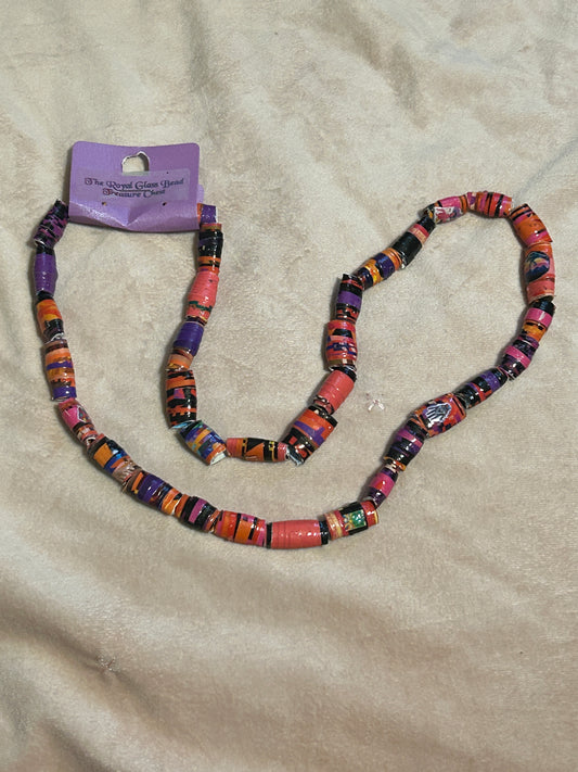 Purple/Pink - Krobo Style Paper Bead Necklace Multi-Colored Ethnic, Glazed