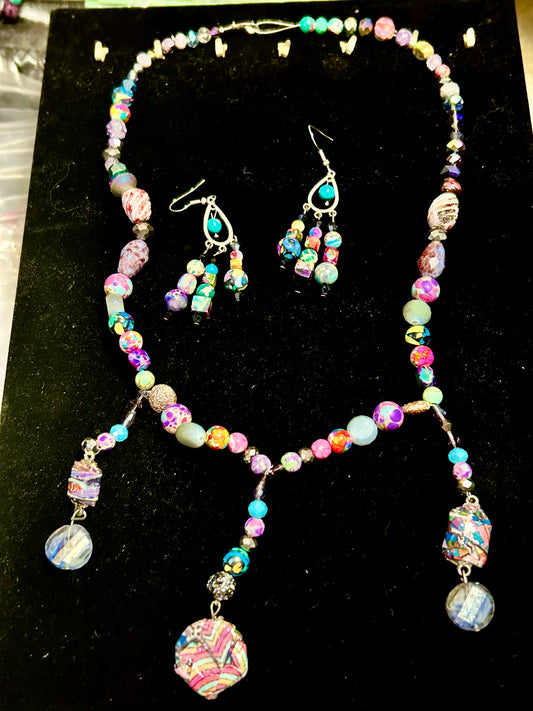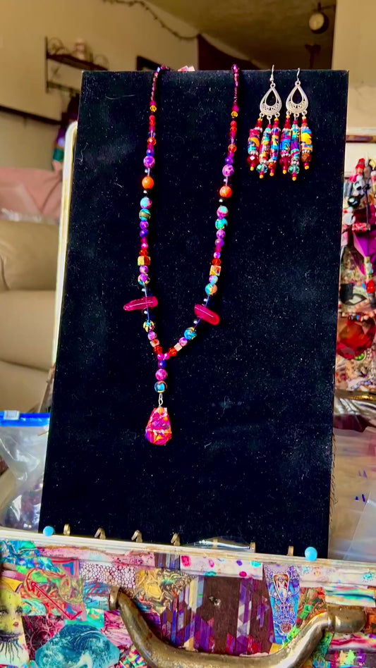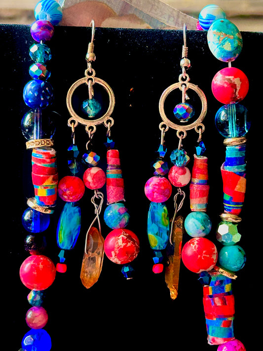Bright Pink & Blue Artisan Handcrafted Beaded Necklace & Earring Set ~ Brilliant Unique Colorful (Copy)