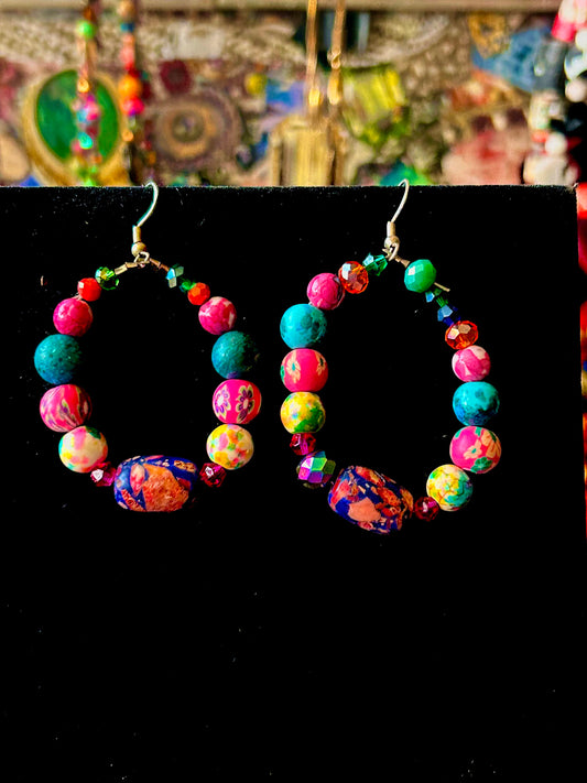 Hot Pink and Orange ~ Artisan Handcrafted Beaded Necklace & Earring Set ~ Brilliant Unique Colorful