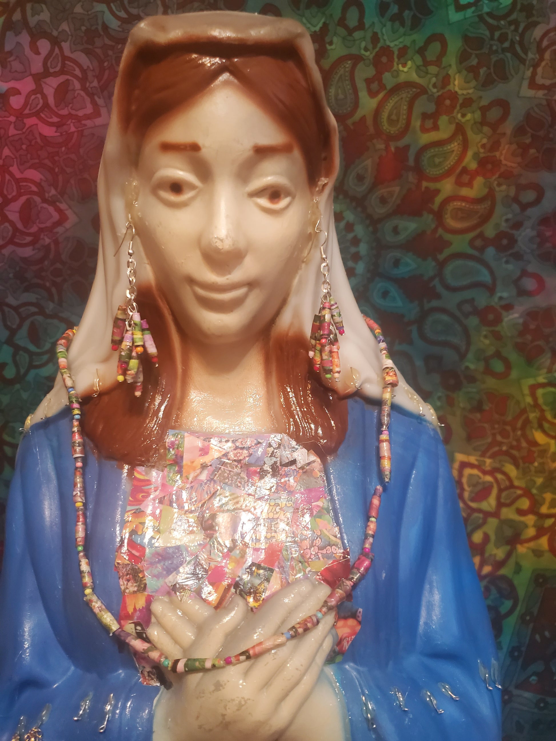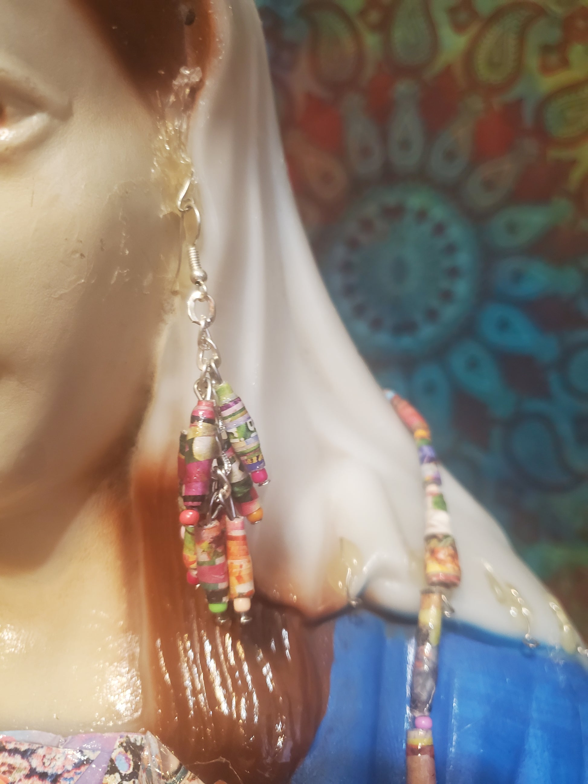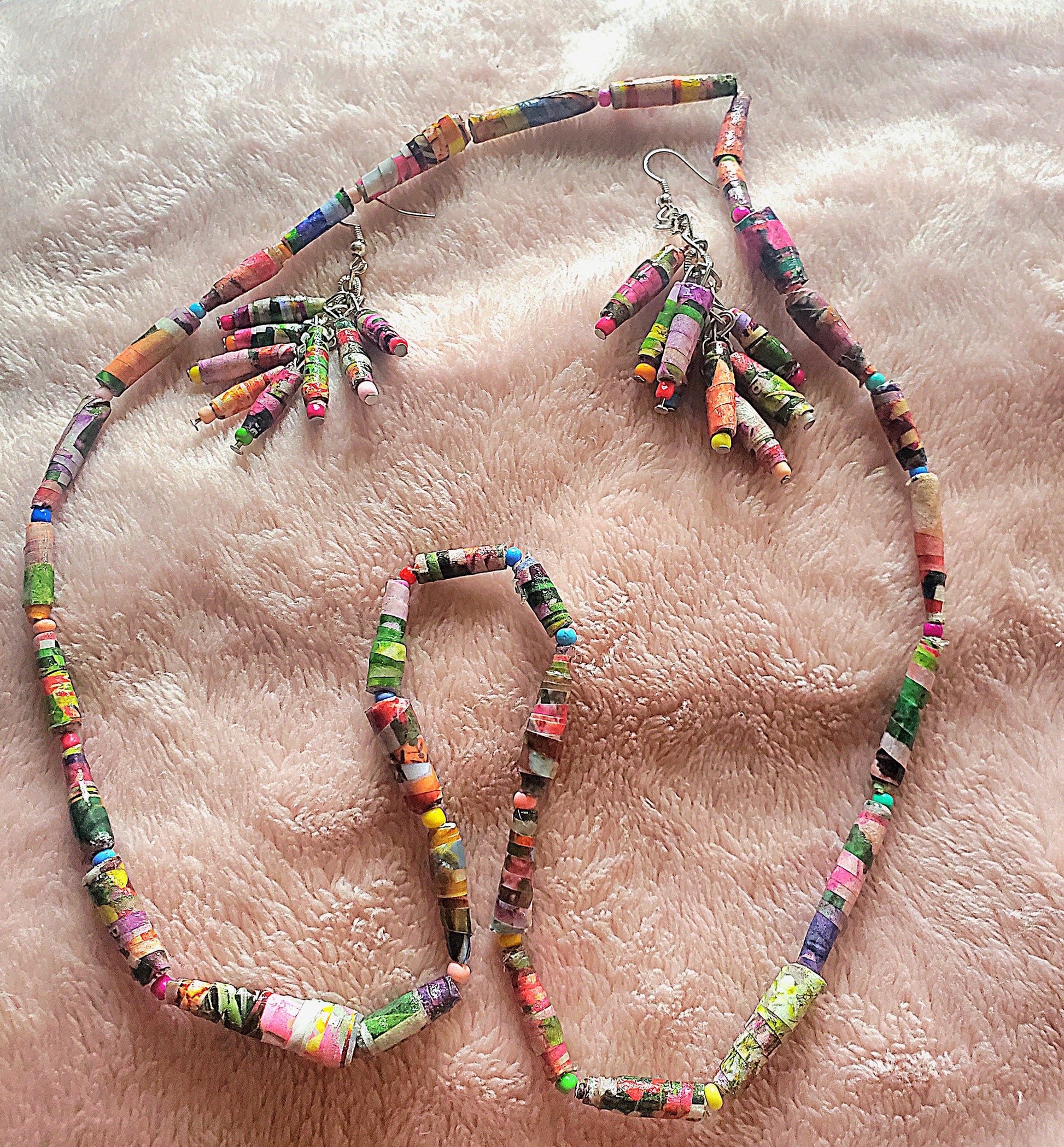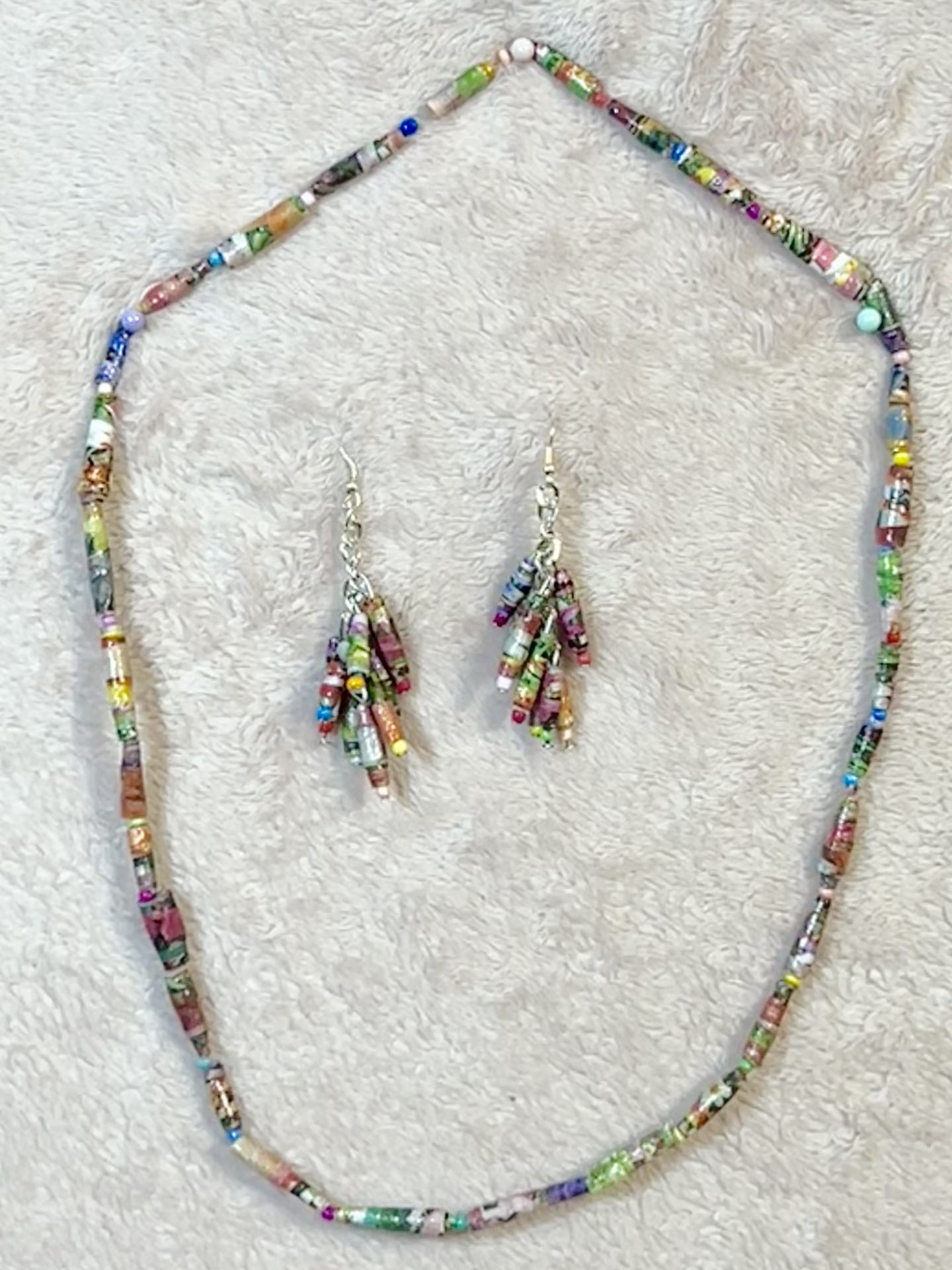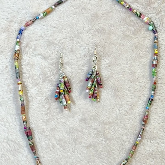 Floral Catalog Handmade Paper Bead Necklace and Earring Set with Hypoallergenic Silver-plated Findings